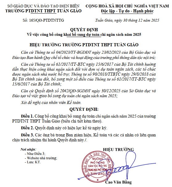 Quyết định công bố công khai bổ sung dự toán chi ngân sách năm 2025
