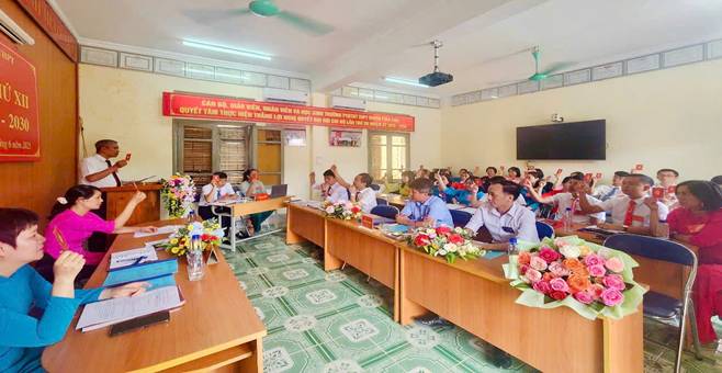 Đại hội dành thời gian cho phần thảo luận sôi nổi, tâm huyết với các tham luận của các tổ chuyên môn và Đoàn Thanh niên. Các nội dung tập trung vào công tác xây dựng Đảng, nâng cao chất lượng giáo dục toàn diện, phát triển đội ngũ cán bộ, giáo viên và tăng cường giáo dục lý tưởng, đạo đức, lối sống cho học sinh.