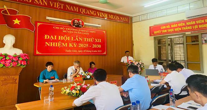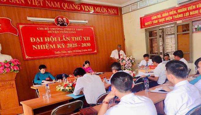 Thực hiện Chỉ thị số 45-CT/TW ngày 14/4/2025 của Bộ Chính trị về tổ chức đại hội đảng bộ các cấp, tiến tới Đại hội đại biểu toàn quốc lần thứ XIV của Đảng; Kế hoạch số 196-KH/HU ngày 30/5/2025 của Huyện ủy Tuần Giáo, ngày 10/6/2025, Chi bộ Trường PTDTNT THPT huyện Tuần Giáo đã long trọng tổ chức Đại hội Chi bộ lần thứ XII, nhiệm kỳ 2025 – 2030.