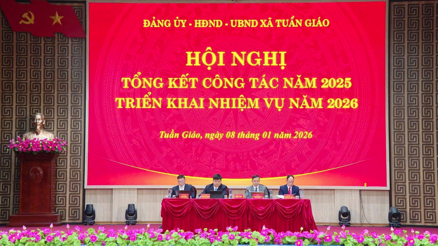 Sáng ngày 08/01/2026, Đảng uỷ xã Tuần Giáo tổ chức Hội nghị Tổng kết công tác năm 2025, triển khai nhiệm vụ năm 2026. Dự Hội nghị có đồng chí Đinh Bảo Dũng - Uỷ viên Ban chấp hành Đảng bộ tỉnh, Bí thư Đảng uỷ, Chủ tịch HĐND xã Tuần Giáo, các đồng chí Thường trực Đảng uỷ, Uỷ viên BCH Đảng bộ xã, đại diện các chi, đảng bộ cơ sở, chi bộ trực thuộc; Trưởng các khối, bản; Đại diện lãnh đạo các phòng, ban, ngành, MTTQ và các đoàn thể xã; Lãnh đạo, chuyên viên các cơ quan tham mưu, giúp việc Đảng ủy xã, Văn phòng HĐND&UBND.
