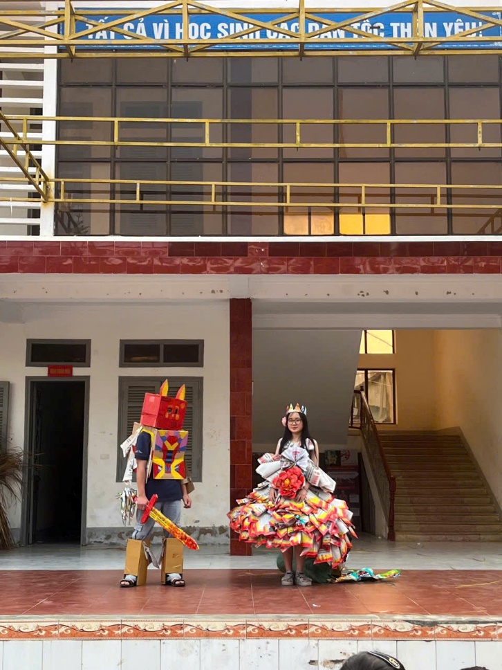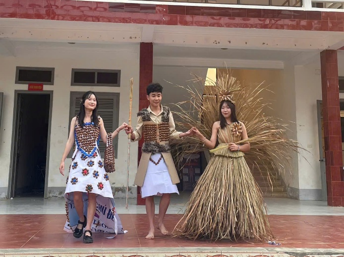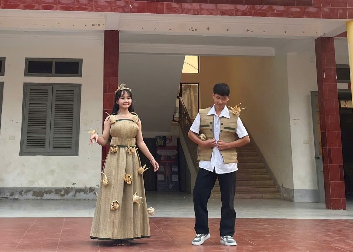Mỗi bộ trang phục trong cuộc thi là một tác phẩm nghệ thuật thực thụ, được tạo nên từ những vật liệu tái chế như giấy báo, chai nhựa, vỏ hộp, vỏ macca, cỏ gianh, đĩa CD, vỏ mỳ tôm, snack. Sự khéo léo và tư duy sáng tạo của các bạn học sinh đã biến những vật liệu tưởng chừng như bỏ đi thành những thiết kế đầy cá tính và ý nghĩa. Từ những chiếc váy rực rỡ làm từ giấy gói kẹo đến những bộ vest lịch lãm từ bìa carton, tất cả đều gửi gắm thông điệp sống xanh và kêu gọi hành động vì một tương lai bền vững.