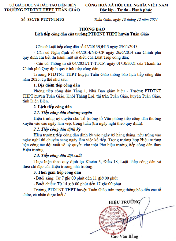 Thông báo về việc điều chỉnh tỷ lệ % chỉ tiêu tuyển sinh vào lớp 10 năm học 2025 - 2026 các xã Khu vực I, huyện Tuần Giáo