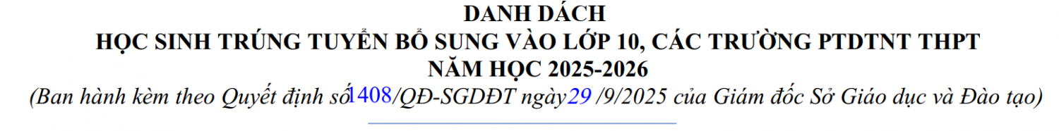 Danh sách học sinh trúng tuyển vào lớp 10 năm học 2025-2026
